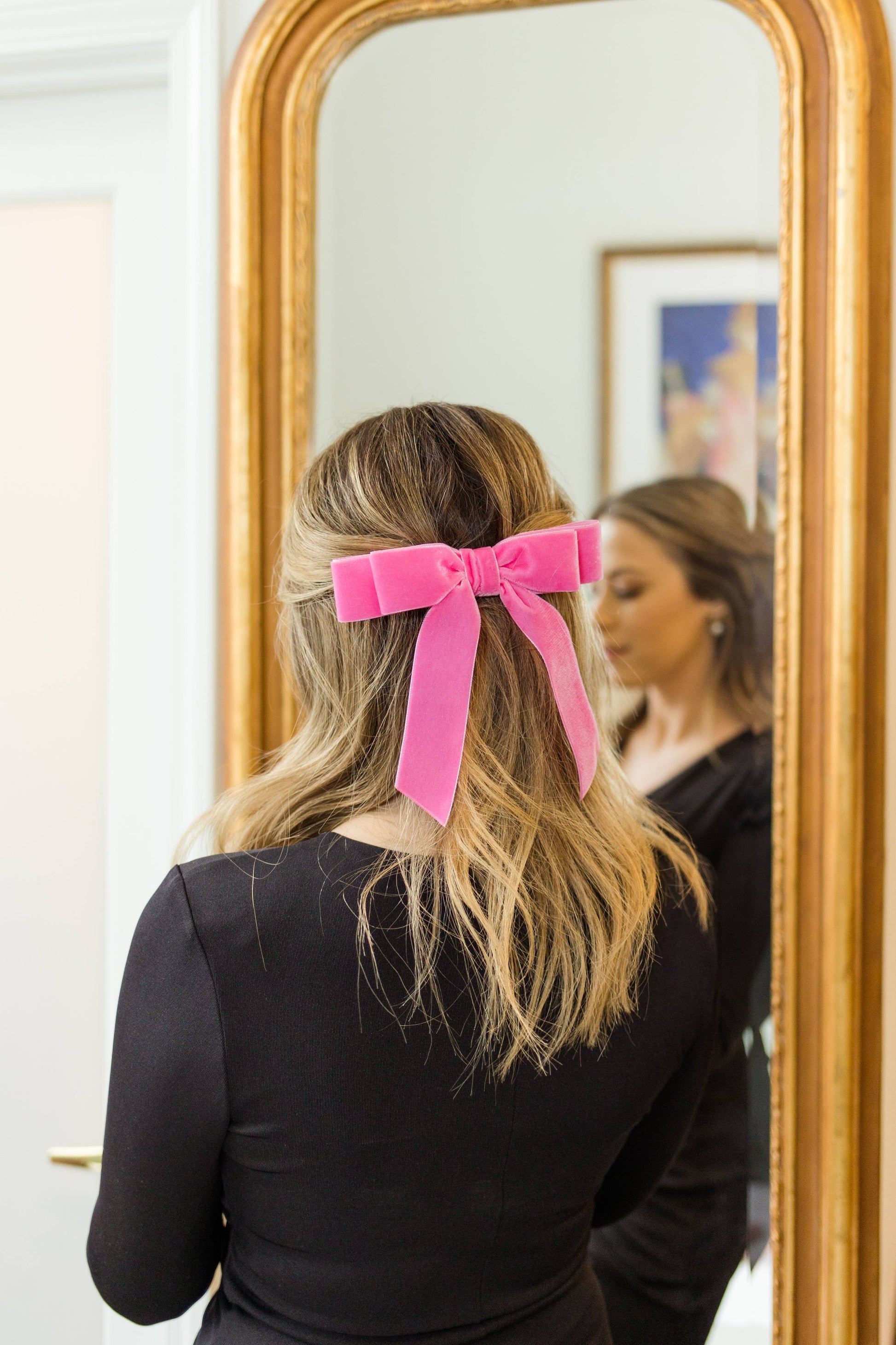 Grace and Grandeur Bow Company’s luxe velvet hair bows are the perfect hair accessory for women and children. The Judy Short Bow is considered a "stacked" bow and features beautiful long ribbon tails. Each bow is made with soft, luxurious velvet ribbon! Dimensions The Judy Short Bow measures approximately 6.75" wide and tails are approximated 7" long from top of bow to longest tip. This bow is secured on a 3" barrette. * Luxe Velvet Ribbon * “Stacked” Bow * Barrette * Size | 6.75”W x 7”L * Grandmillennial Style Made in the USA