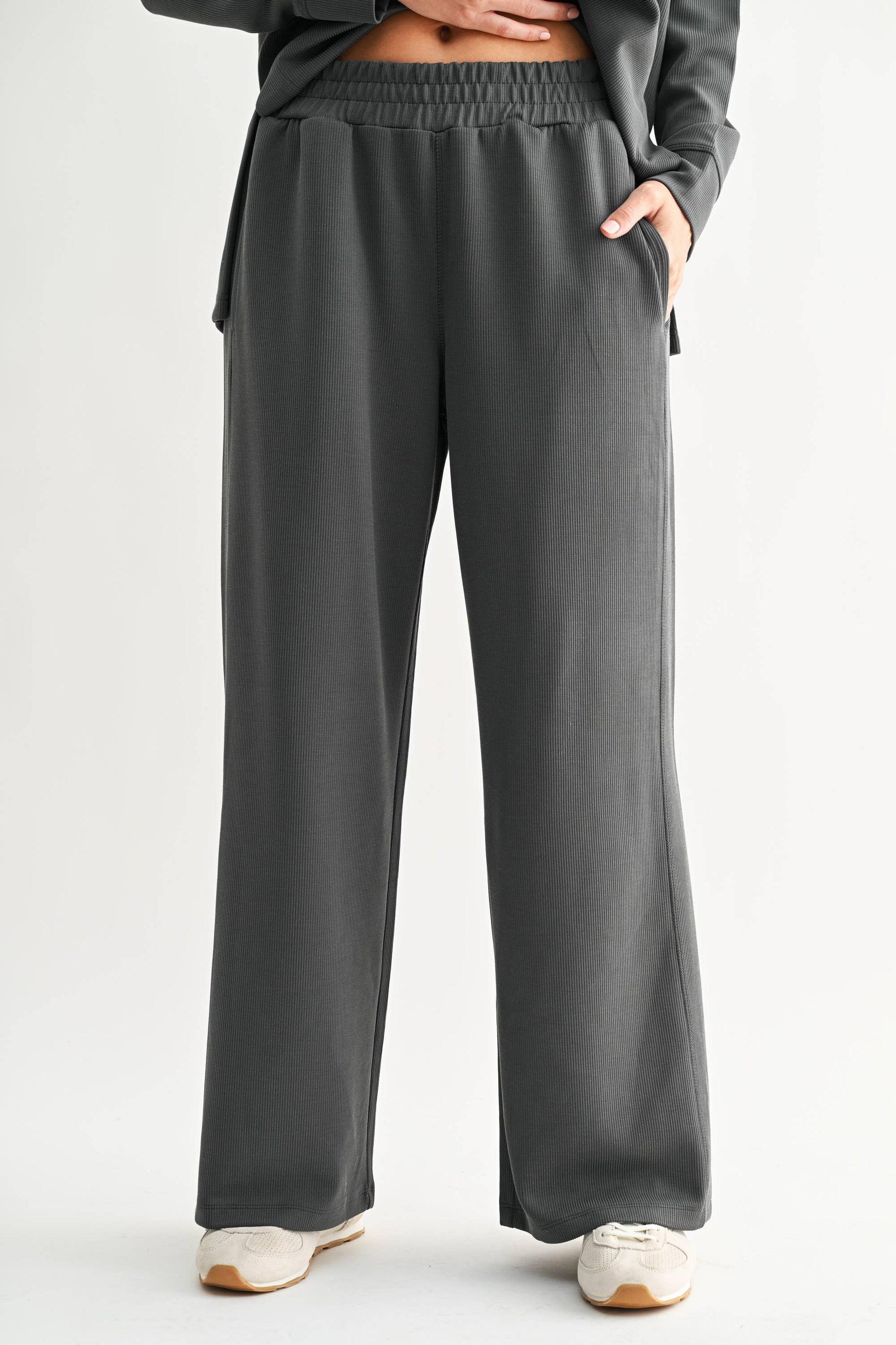 Flowy, flattering, and effortlessly chic—the Luxe Sand Wash Rib Wide-Leg Pants are your go-to for elevated comfort. Crafted from buttery-soft, sand-washed rib fabric, these pants offer a rich texture with depth and dimension. The elastic waistband ensures a perfect fit, while the side seam paneling creates a long, elongated silhouette. Designed for versatility, these wide-leg pants pair seamlessly with the matching Sand Wash Rib Tops